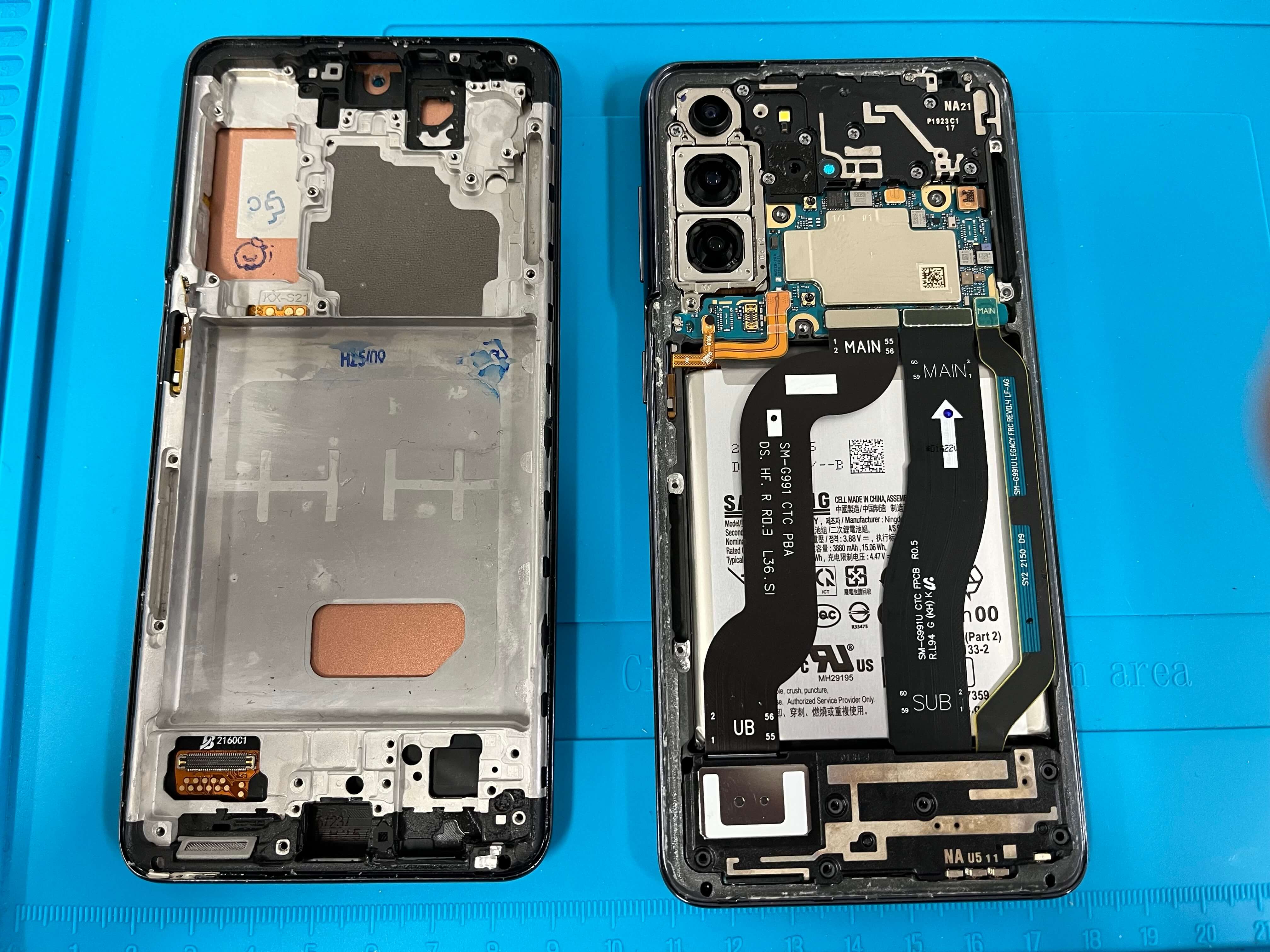 今回はGalaxy S21の水没して画面が表示されなくなった端末の修理をしていきたいと思います。