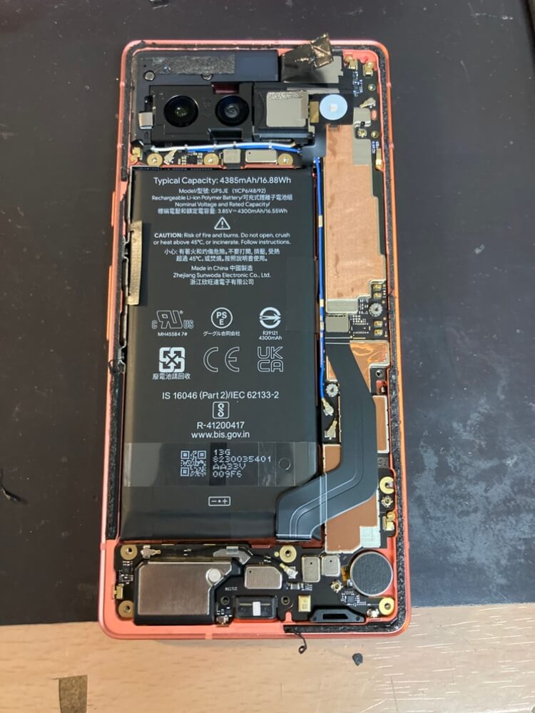 pixel7aは背面より開けていきます。外周以外にもカメラの上下にも接着があるので隙間から徐々に